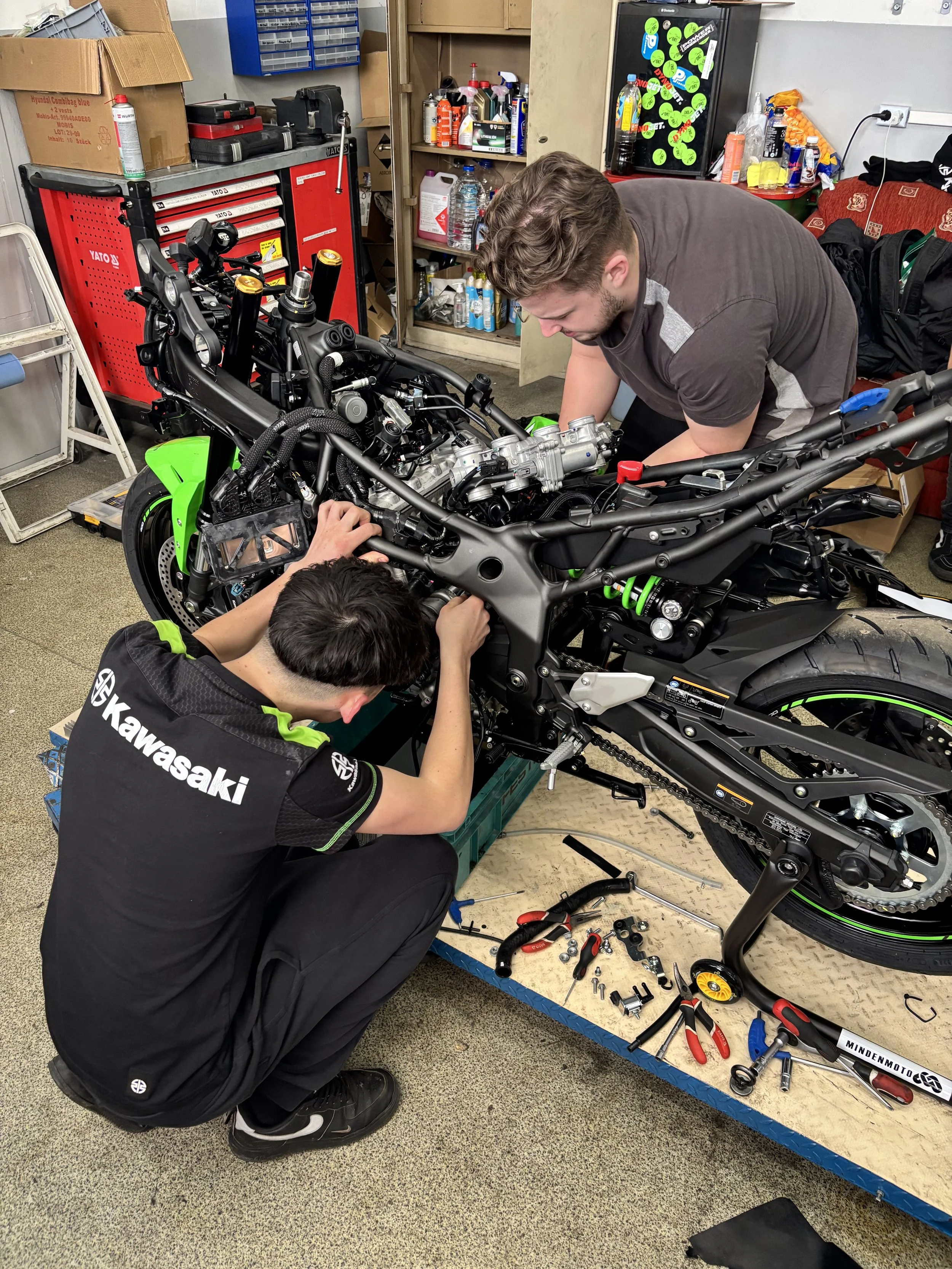 At Mindenmoto we don’t just build from scratch, you can bring in your beloved motorcycle for a service before your next outing on the racetrack! Our professional mechanics will take care of your baby and have it running like never before!